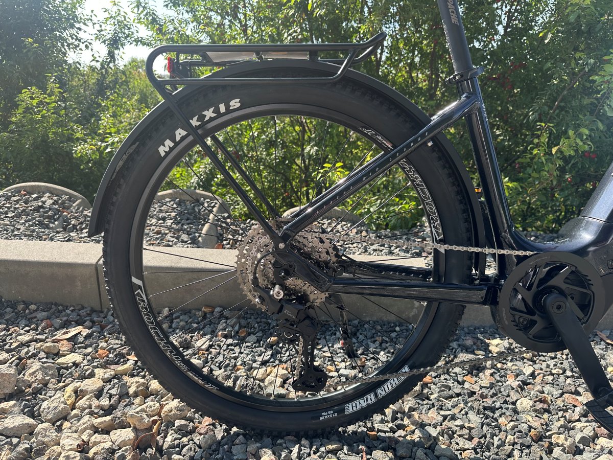 Nízký nástup rámu usnadňuje nasedání a sesedání, což oceníte při každodenním používání. Elektrokolo je kompletně vybavené pro jízdu za každého počasí – nechybí blatníky s integrovaným nosičem Racktime Snap it pro snadné uchycení brašny, výkonné osvětlení napájené z baterie, stojánek ani pohodlné sedlo s paměťovou pěnou.