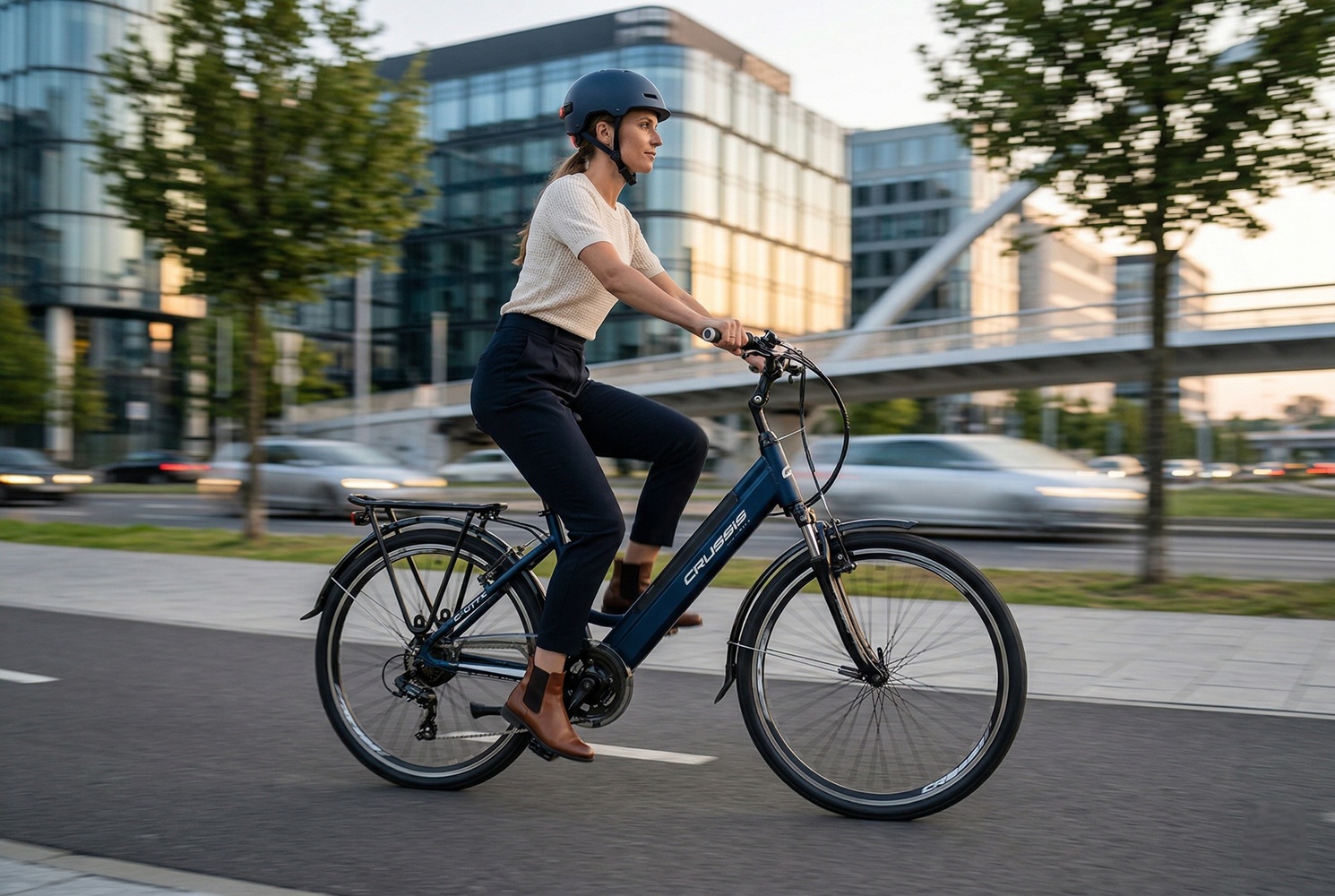 CRUSSIS e-City 1.20-(459 Wh) je spolehlivé, pohodlné a praktické městské elektrokolo s dostatečným dojezdem a komfortní výbavou. Skvěle se hodí pro běžné i delší cesty, nabízí jednoduché ovládání a příjemný zážitek z jízdy.