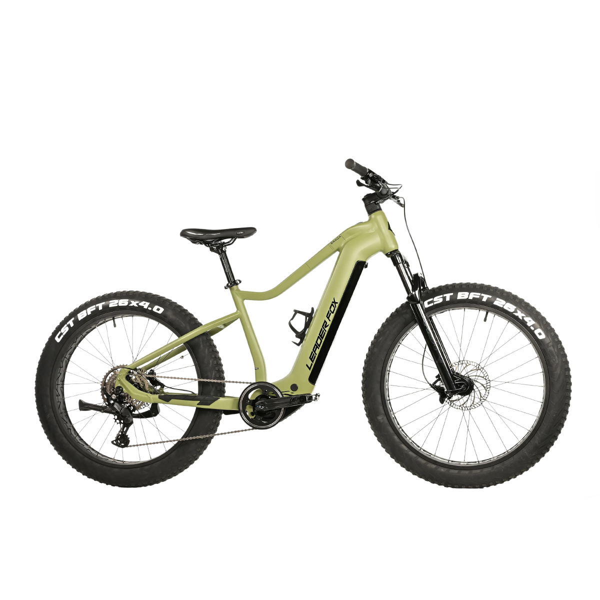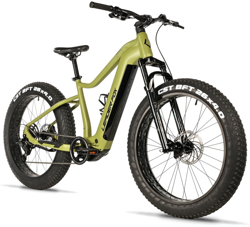 FAT e-bike LEADER FOX Braga 26" 2024 s nejvýkonnějším středovým motorem Bafang - M510, baterií s kapacitou 835 Wh, 9 rychlostní přehazovačkou Shimano a přední vidlicí RST guide se zdvihem 95 mm. Postaveno na lehkém hliníkovém rámu s moderní a velmi hravou geometrií a rozměrem kol 26 x 4,0“. Prohánějte se neomezeně divokým lesem, zasněženou krajinou nebo v písečných dunách.