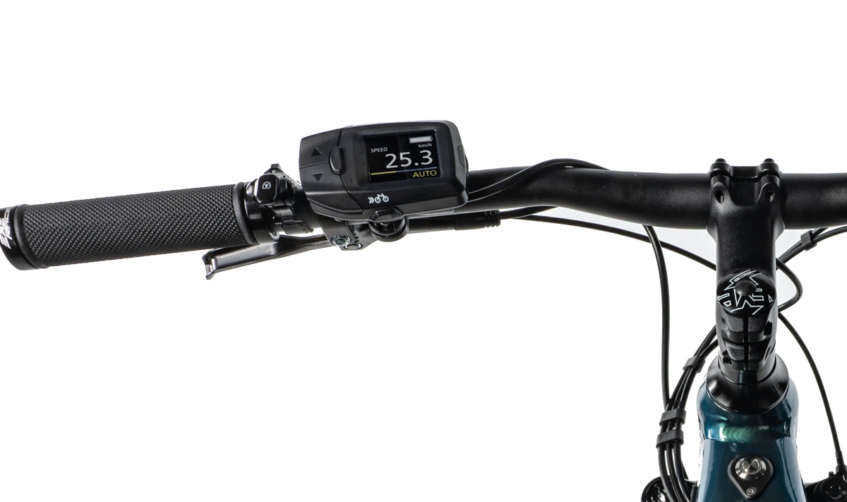 Boční barevný displej je celkově velmi přehledný. Obrazovka je vpravo a vlevo jsou dvě velké šipky a úzká svislá klávesa, která funguje jako menu. Řídicí jednotka s krytím IPX5 proti vodě a prachu.